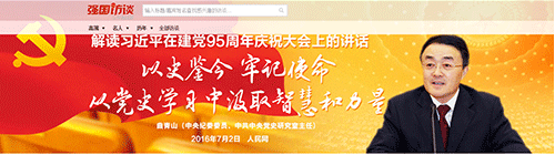 人民网北京7月2日电 (黄策舆)7月1日,庆祝中国共产党成立95周年大会在人民大会堂隆重举行,中共中央总书记、国家主席、中央军委主席习近平发表重要讲话。今日上午,人民网邀请中央纪委委员、中共中央党史研究室主任曲青山曲主任做客强国论坛,为广大网友解读习总书记的讲话精神。