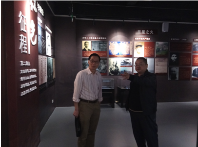 考察组一行参观了党史陈列展厅,了解展览设计、布展等情况,实地考察了党史资料库资料存放、分类等情况。