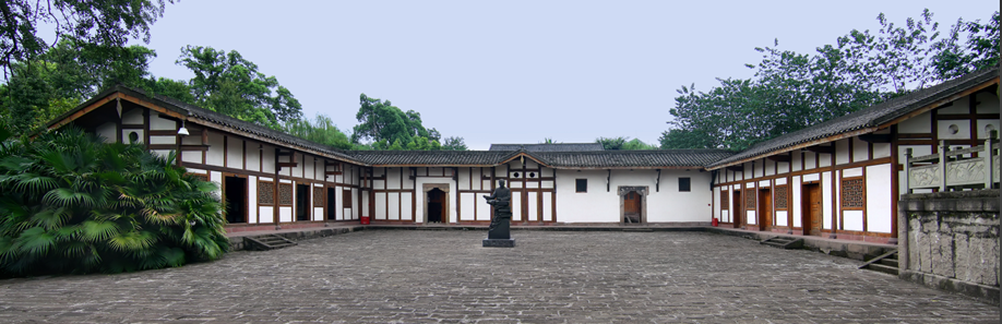 郭沫若旧居为清代晚期巴渝民居建筑,坐南向北,包括前院、后院和郭沫若旧居。前院由前厅、正厅、厢房合围,呈四合院布局;后院为一单体建筑,郭沫若旧居为三开间单体建筑。2005年9月正式对外开放。