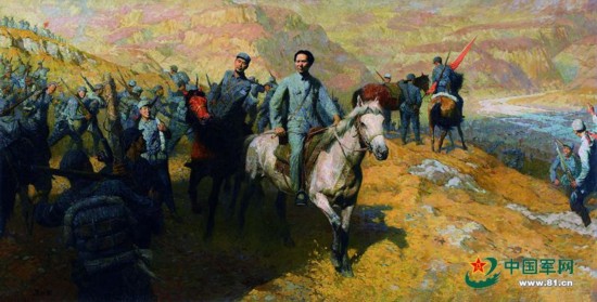 油画《转战南北——抗战中的毛泽东与周恩来》(局部)作者:汤沐黎