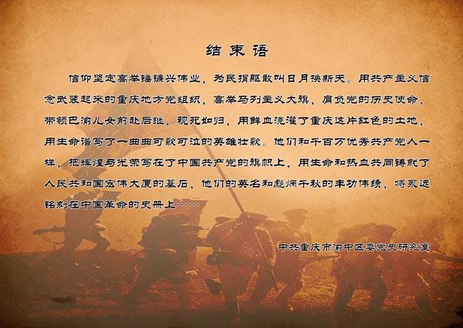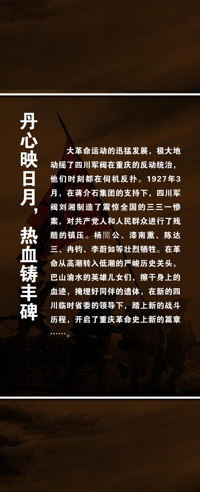2月29日,经市委批准同意,由市委党史研究室、渝中区委主办,渝中区委宣传部、区委党史研究室承办的“红色旗帜·巴渝丰碑——纪念中共重庆地委成立九十周年图片展”在重庆市渝中区二府衙中共重庆地委旧址开展。展览以六个单元、百余幅图片资料,全景式展现了重庆地方党组织带领人民群众谱写的一部波澜壮阔的英雄史诗。