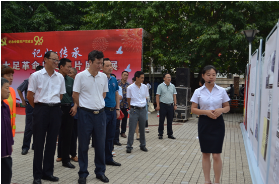 为纪念中国共产党成立96周年,6月27日,“记忆 传承——大足革命历史图片展”巡展启动仪式在石马镇举行。大足区委常委、宣传部长蒋朝彬出席仪式并讲话。大足区委党史研究室主任周荣海、石马镇党委书记陈奇林作了发言。
