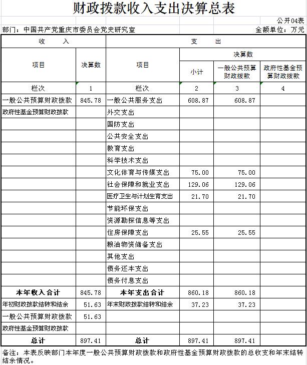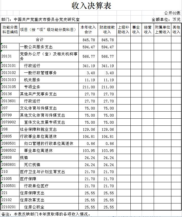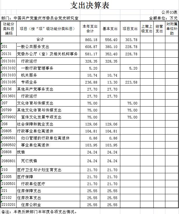中国共产党重庆市委员会党史研究室2016年部门决算