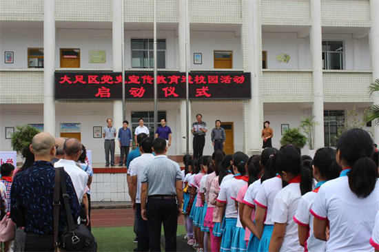 9月21日,大足区党史宣传教育进校园活动启动仪式在国梁镇中心小学举行。大足区委党史研究室主任周荣海作党史主题宣讲,国梁小学校长、党支部书记张平致辞,学生代表李星雨发言。大足区委统战部、区委党史研究室、国梁镇政府负责同志及国梁、曲水小学师生700余人参加活动。