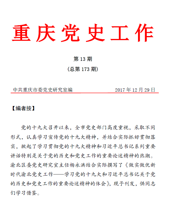 重庆党史工作2017年第13期(总第173期)