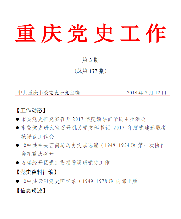 《重庆党史工作》2018年第3期(总第177期)