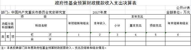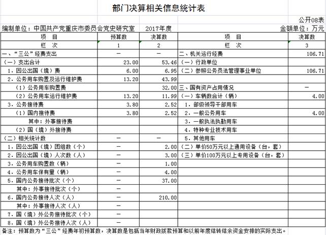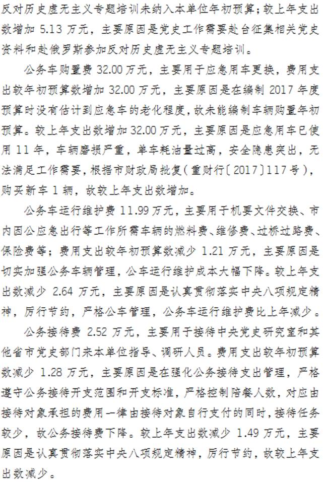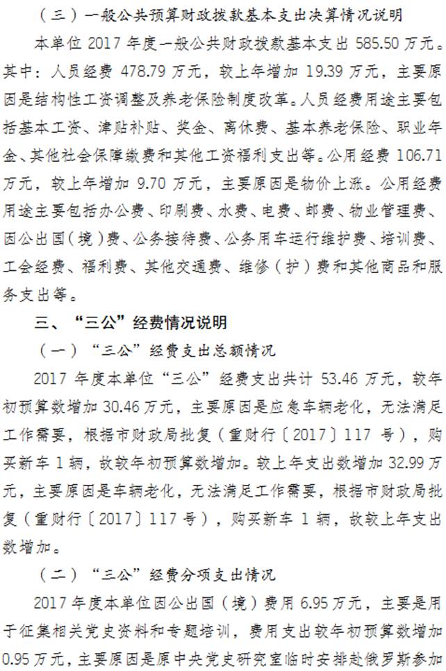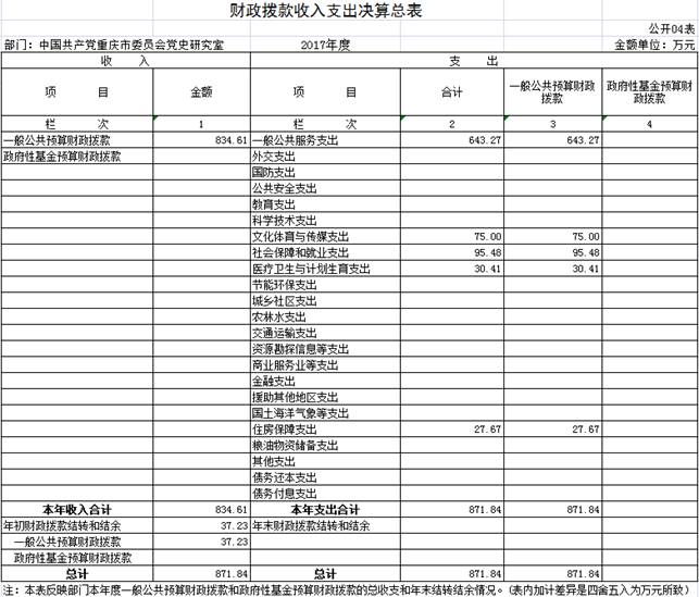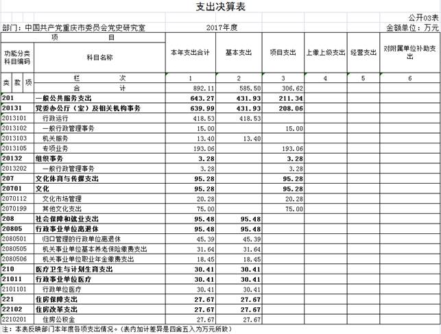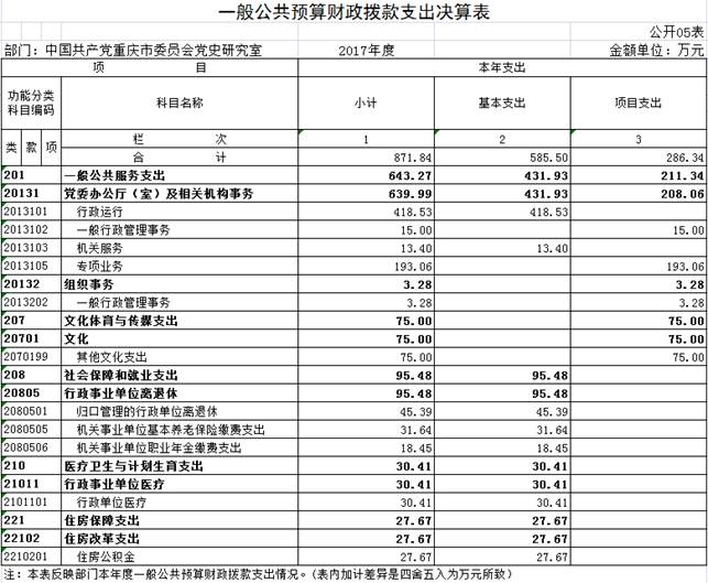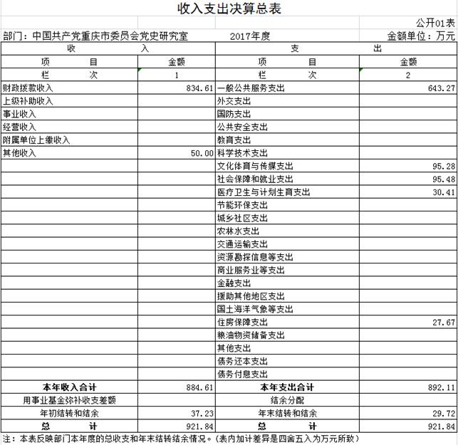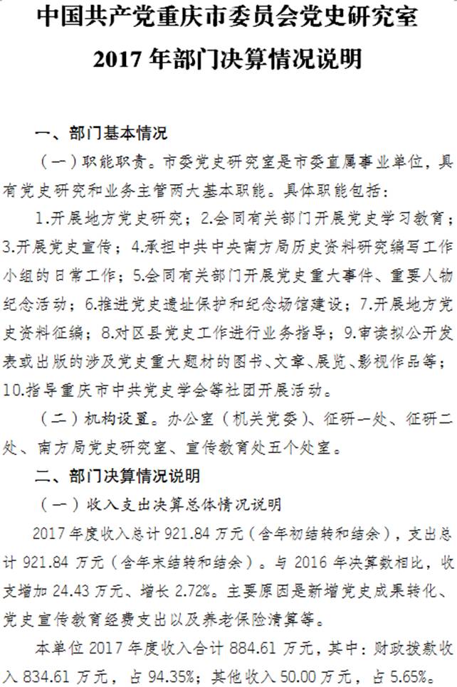 中国共产党重庆市委员会党史研究室2017年部门决算公开