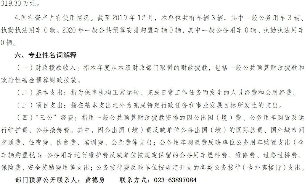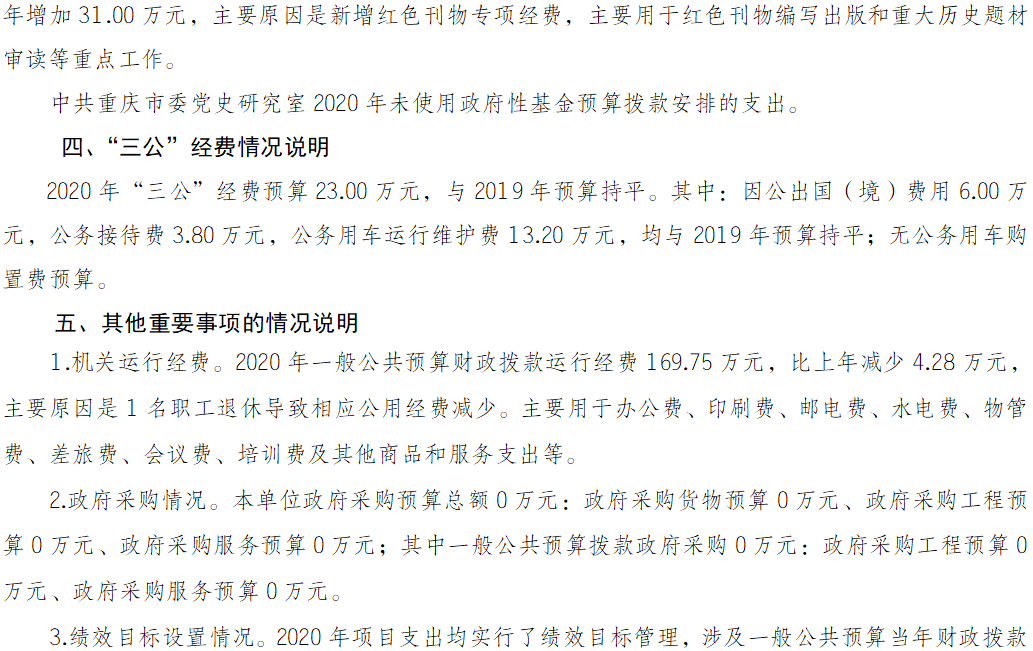 中国共产党重庆市委员会党史研究室2020年部门预算公开