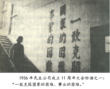 由于民生公司在抗战中伤亡近200人,被炸沉炸伤轮船近百艘,又低价甚至免费运送学生、难童、军人,以至公司严重亏损。1942年4月8日,在民生公司举行的股东大会上,作为公司总经理的卢作孚“讲至公司艰困,为国牺牲,公司员工宁受薄薪,轻生命,为国冒险处”,深感对不起公司的股东和全体职工,竟当场嚎啕大哭起来。在场的著名教育家黄炎培拍案而起,当场泼墨挥毫:“公司亏本,对不起股东,为抗战而亏本,公司对得起国家,即股东对得起国家。没有国家,哪有公司,中华复兴的一日,即我公司复兴的一天!”民生公司的命运是与国家、民族的命运融为一体了。正如1944年一家美国杂志《Asia and Ameriea’s》刊登《卢作孚和他的长江船队》一文中说:“卢先生全部活动的推动力,是为他的祖国和他的同胞服务,而不是为了个人的利益和地位。”