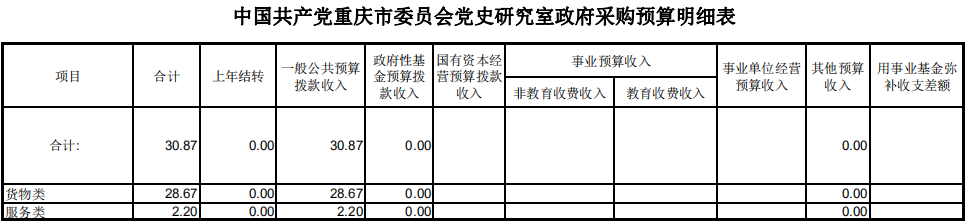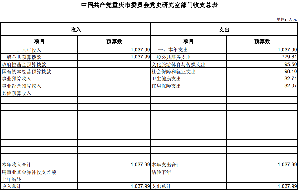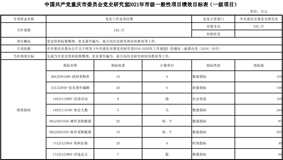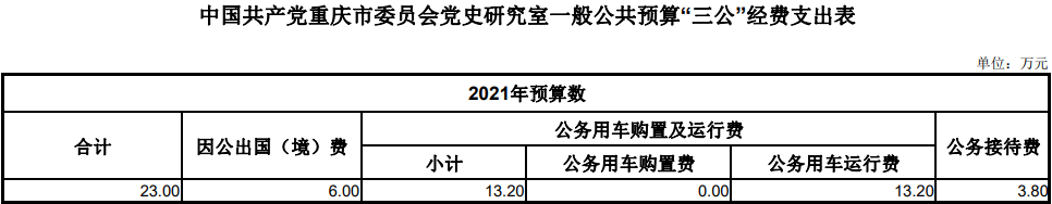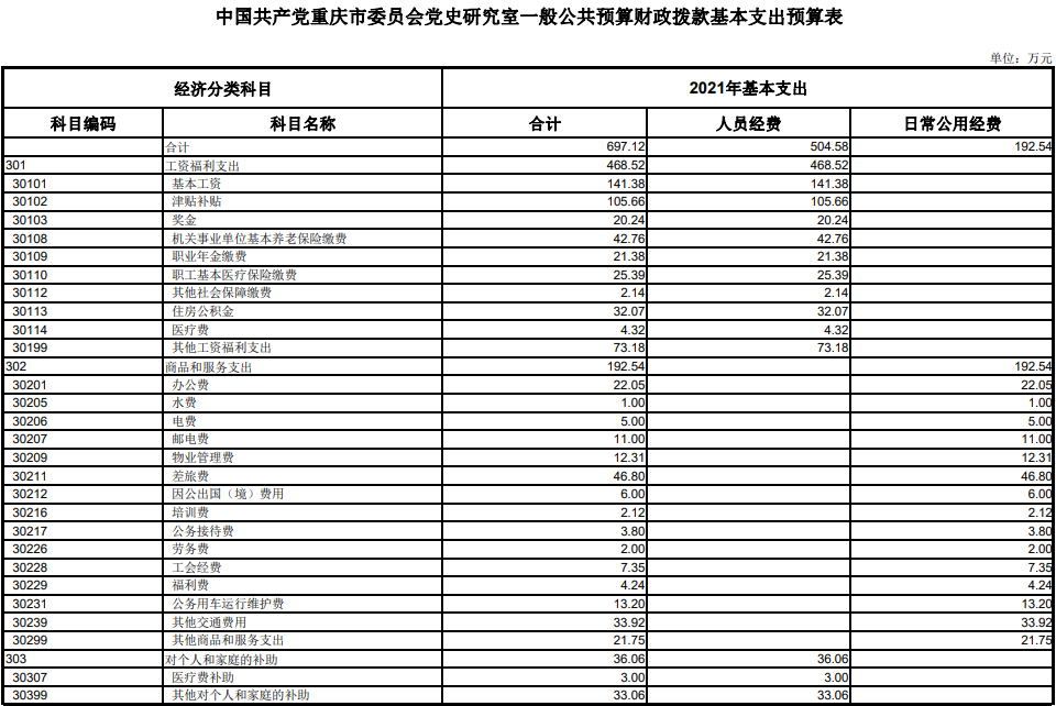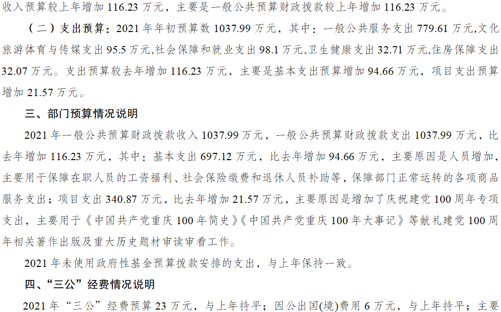 中国共产党重庆市委员会党史研究室2021年部门预算公开