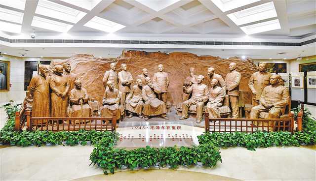 4月9日,重庆日报记者走进位于上清寺的中国民主党派历史陈列馆,首先被映入眼帘的大型群雕所吸引。这座名为“1945·毛泽东在重庆”的纪念雕塑,形象化、艺术性地再现了毛泽东、周恩来与各民主党派领导人、知名人士聚会重庆,畅所欲言、共商国是的情景。