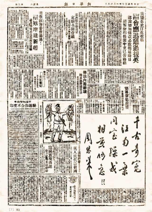 1941年1月18日,刊登有周恩来为皖南事变题词的《新华日报》版面。(本报资料图片)