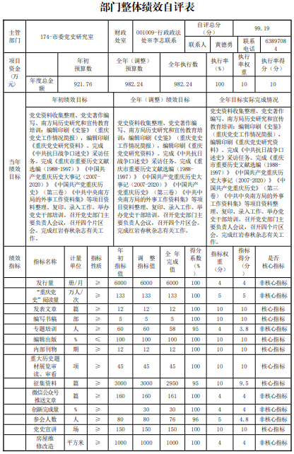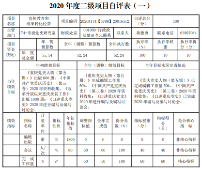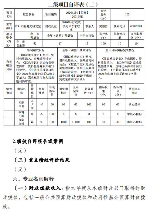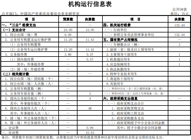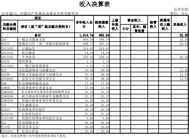 中国共产党重庆市委员会党史研究室2020年度决算公开