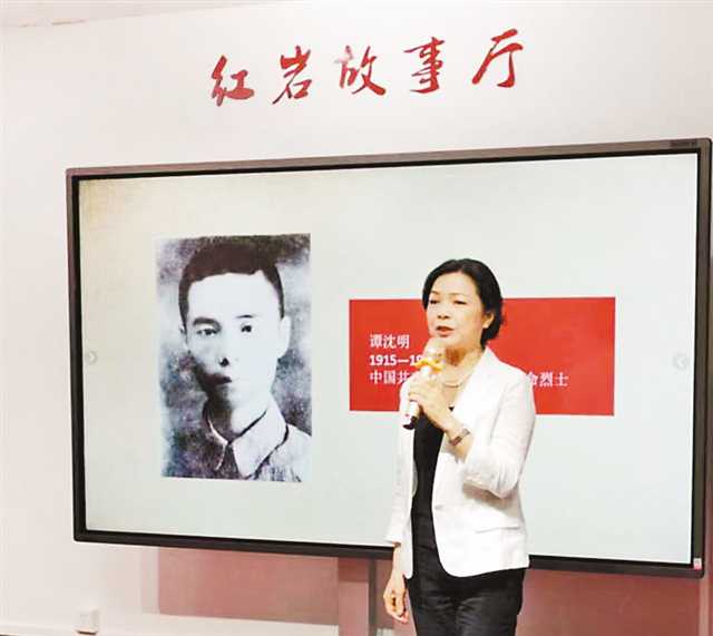 肖红在“红岩故事厅”讲述二外公谭沈明烈士的故事。(受访者供图)